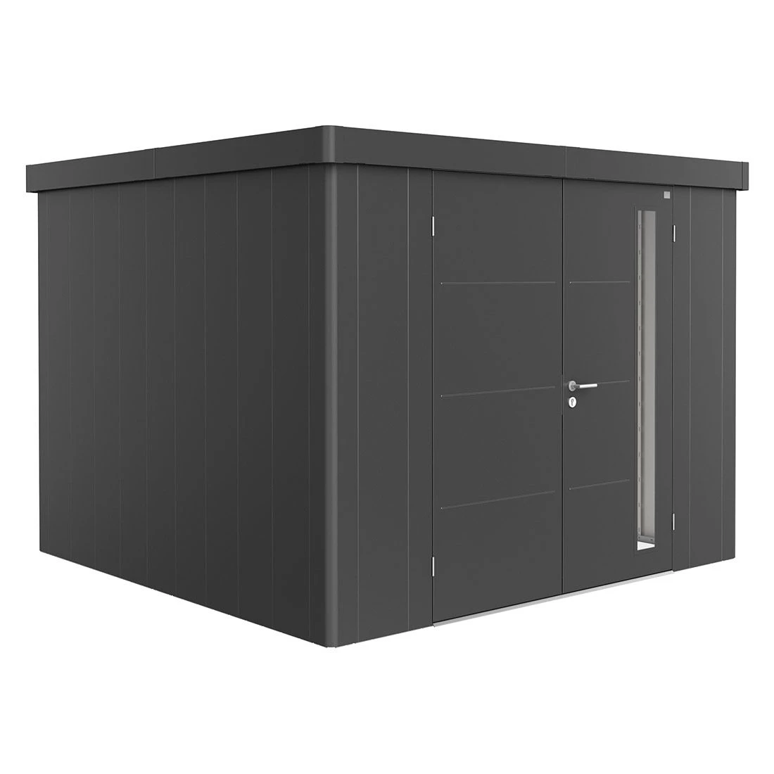 Das quadratische Biohort Neo Gerätehaus 3C ist die perfekte Lösung, wenn Sie eine geschützte Aufbewahrungsmöglichkeit für Ihre Blumentöpfe, den Grill und weitere Utensilien benötigen. Ob als praktische Outdoor-Werkstatt oder als nützlichen Stauraum – das 292x292x222 cm (BxTxH) große Gerätehaus in der Farbe Dunkelgrau-Metallic macht dank der hochwertigen Verarbeitung und des mitgelieferten Zubehörs für die Inneneinrichtung eine hervorragende Figur.