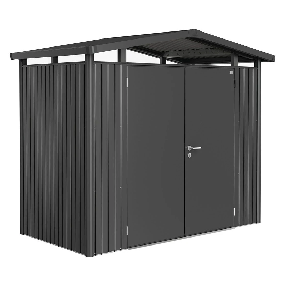 Die Serie Panorama von Biohort richtet sich an Personen, die sich ein luxuriöses Gerätehaus in höchster Qualität und Funktionalität gönnen möchten. Im Gegensatz zu günstigeren Produkten verfügt das Biohort Gerätehaus über eine doppelte Stahl-Blechstärke. Zudem wartet es mit einem umlaufenden Acrylglas-Oberlicht unter dem Satteldach auf.