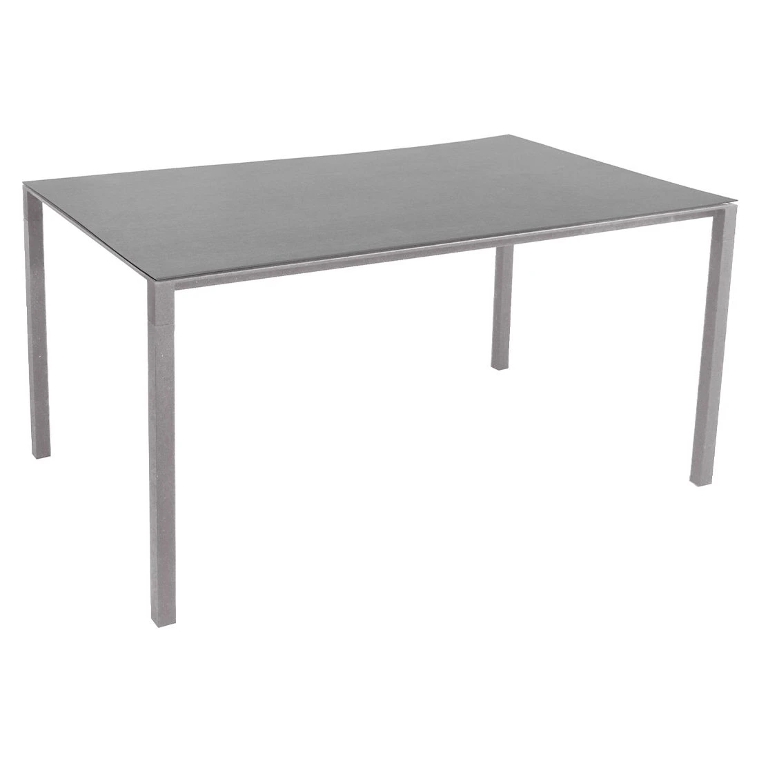 Aufgrund seines Gestells aus Aluminium zählt der Gartentisch Pure zu den modernen Tischmodellen, die sich auf der Terrasse ganz einfach aufstellen und bewegen lassen. Farblich ist das Gestell in Light Grey gehalten. Für die Tischplatte wird das Naturmaterial Keramik verarbeitet. Keramikplatten sind stoß-, schlag- und schnittbeständig und zählen somit zu den stabilsten Tischplatten auf dem Gartentisch-Markt. Farblich ist die Tischplatte in einem schönen Basalt gehalten. Als klassische Design-Komponente fungiert das geradlinige Vierfußgestell. Das Design des Gartentisches ist klassisch rechteckig gestaltet.