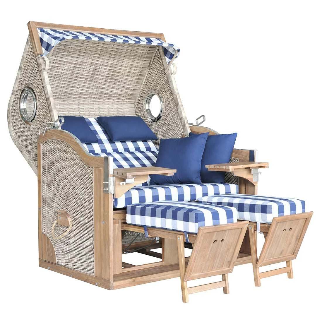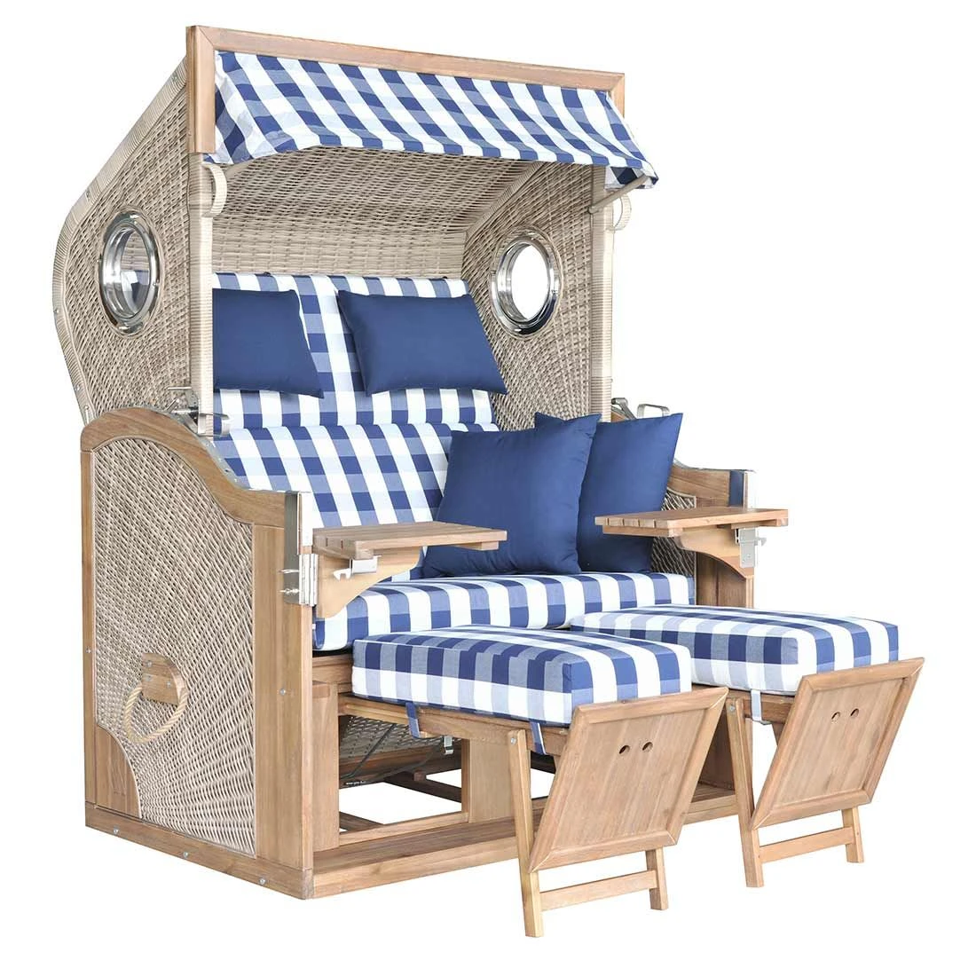 Erleben Sie mit dem eleganten deVries Strandkorb Entspannung wie im Urlaub direkt in Ihrem Garten. Aufgrund der Kombination von modernem Geflecht und hochwertigem Massivholz ist dieser Strandkorb nicht nur äußerst gemütlich, sondern zudem sehr stabil und robust. Die Verbindung der verschiedenen Materialien macht dieses Möbel überaus wertig, weshalb es sich auf jedem Balkon und in jedem Garten sehen lassen kann. Dank der weiteren Funktionalitäten können Sie diesen Strandkorb genau auf Ihre Bedürfnisse abstimmen. Um das Urlaubsfeeling passend abzurunden, bringt der Strandkorb noch reichlich Zubehör mit, damit sich Ihr Zuhause in eine echte Wohlfühloase verwandelt.