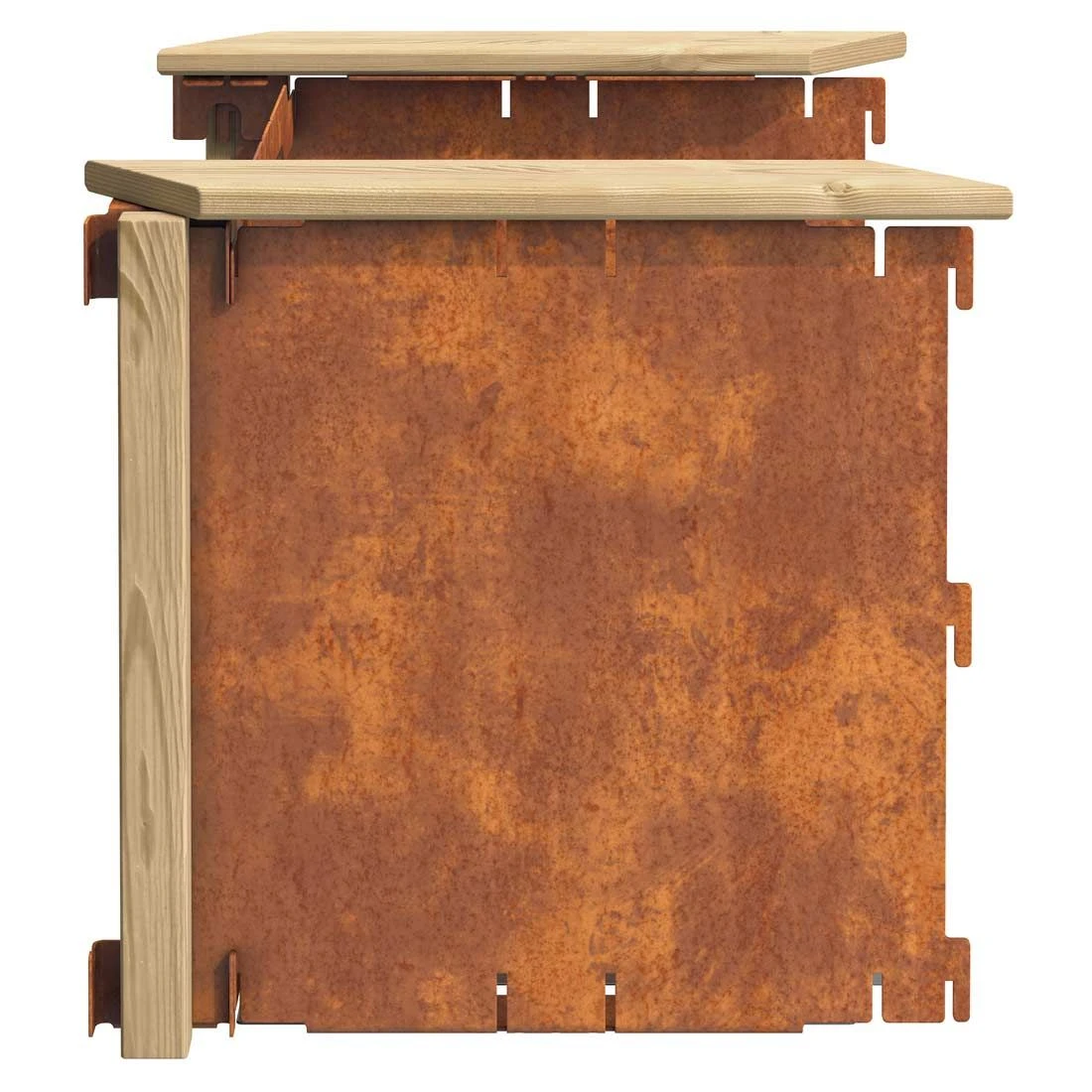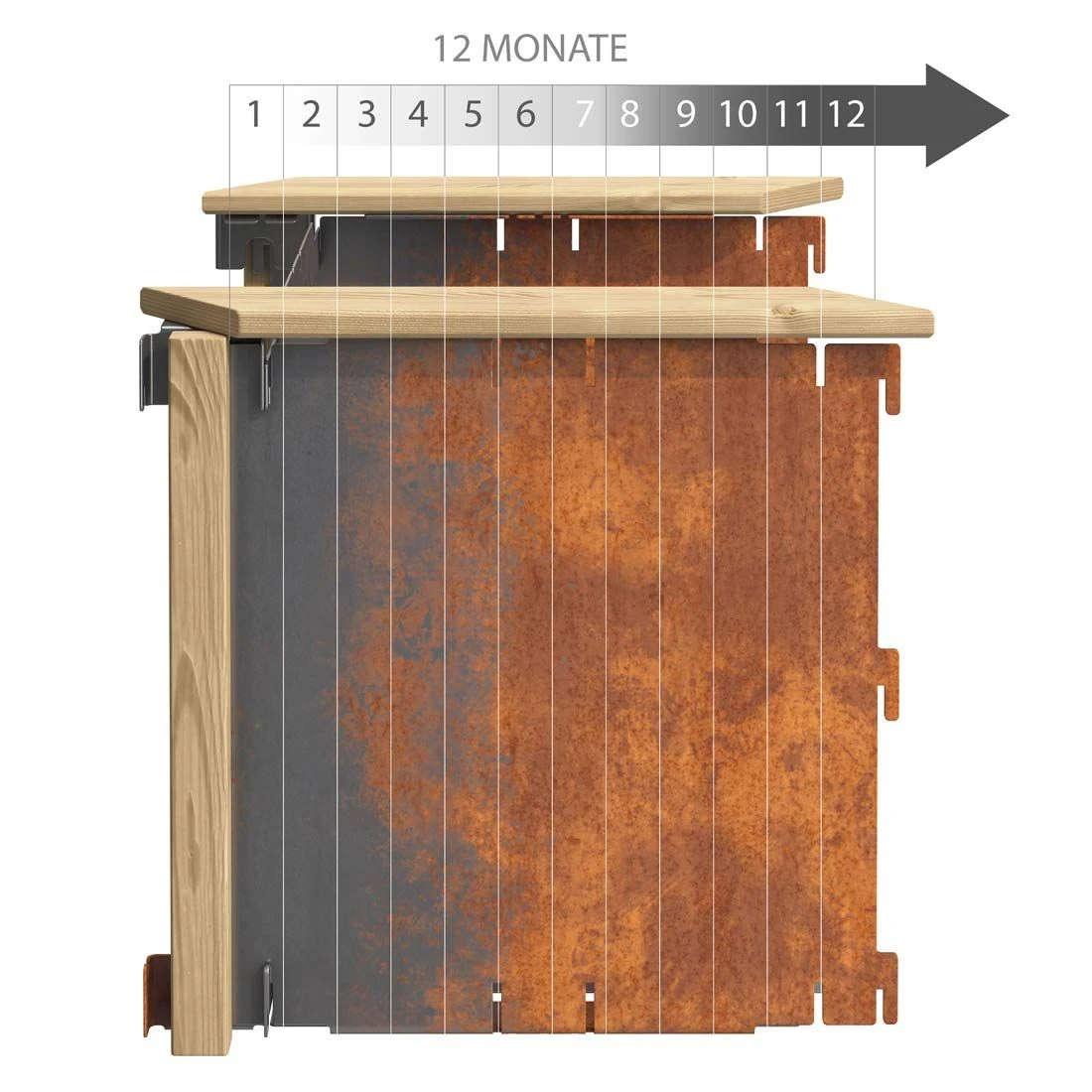 Der Stahl wird unbehandelt geliefert, die Rostschicht bildet sich erst mit der Zeit und kann zu Abfärbungen führen.