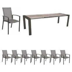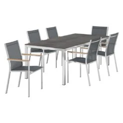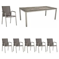 Siena Garden Savona Move Gartenmöbel-Set 7-tlg. Mit Tisch 200x100cm Anthrazit/Schwarz-Silber