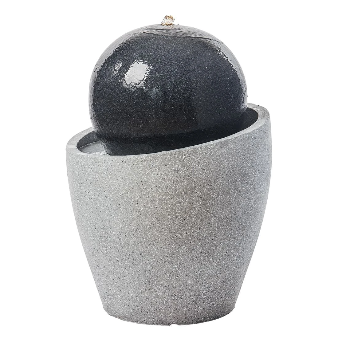 Oben ist die Kugel mit einem kleinen Auslass versehen, in den eine LED-Beleuchtung integriert ist. Bereits in der Dämmerung und in der Nacht sorgt diese für stimmungsvolle Lichteffekte im Wasser. Der edle Gartenbrunnen ist mit einer Pumpe ausgestattet, die das Wasser nach oben befördert und sanft über die Kugel in die Schale des Sockels perlen lässt.