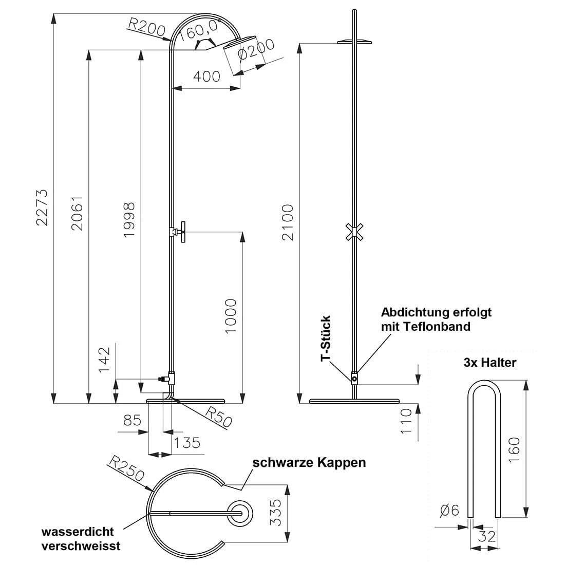 - Höhe vom Boden bis zum Duschkopf 218 cm