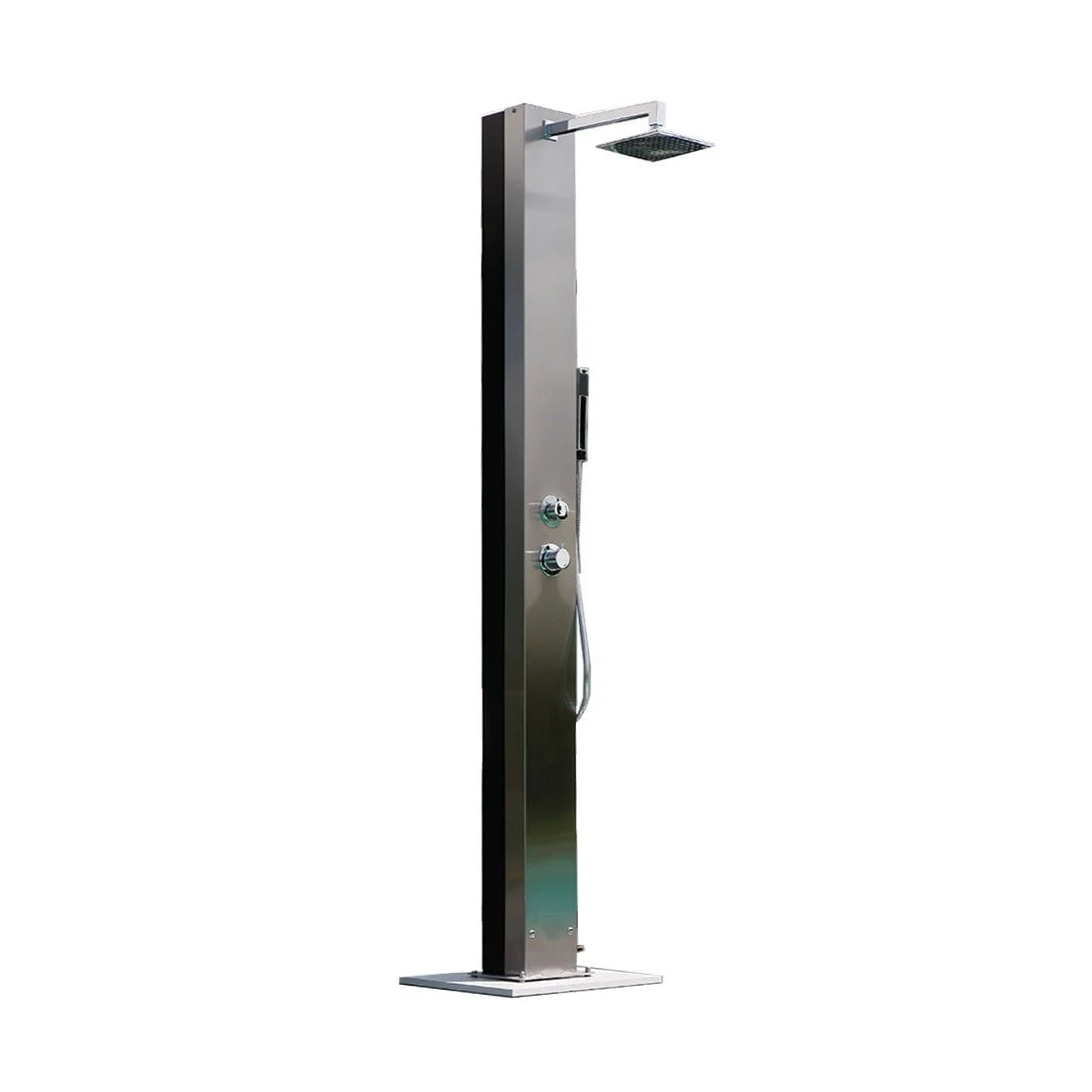 Trinidad Solar – sie ist aus kühlem Edelstahl V2A gefertigt und verfügt über einen Wassertank aus Aluminium. Dieser fasst ca. 25 Liter und ist zur schnelleren Erwärmung durch die Sonneneinstrahlung außen lackiert. Selbstverständlich lässt sich die Temperatur mit dem Einhebelmischer individuell regeln und die Handbrause getrennt ansteuern. Der Wasseranschluss erfolgt über ein handelsübliches Gartenschlauchsystem. Jetzt kann der Sommer kommen!