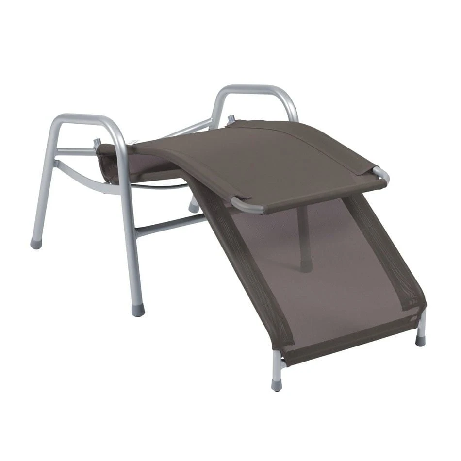 Das Gestell wird aus Stahl gefertigt und sorgt damit für stabilen Halt beim Sitzen. Farblich ist dieses in Platin gehalten. Für die Bespannung der Sitzfläche wird hochwertiges Textilene verwendet. Es zeichnet sich durch eine hohe Robustheit gegenüber Hitze und Frost aus und ist leicht zu reinigen. Die Sitzfläche hat eine schöne Farbgebung in Taupe.