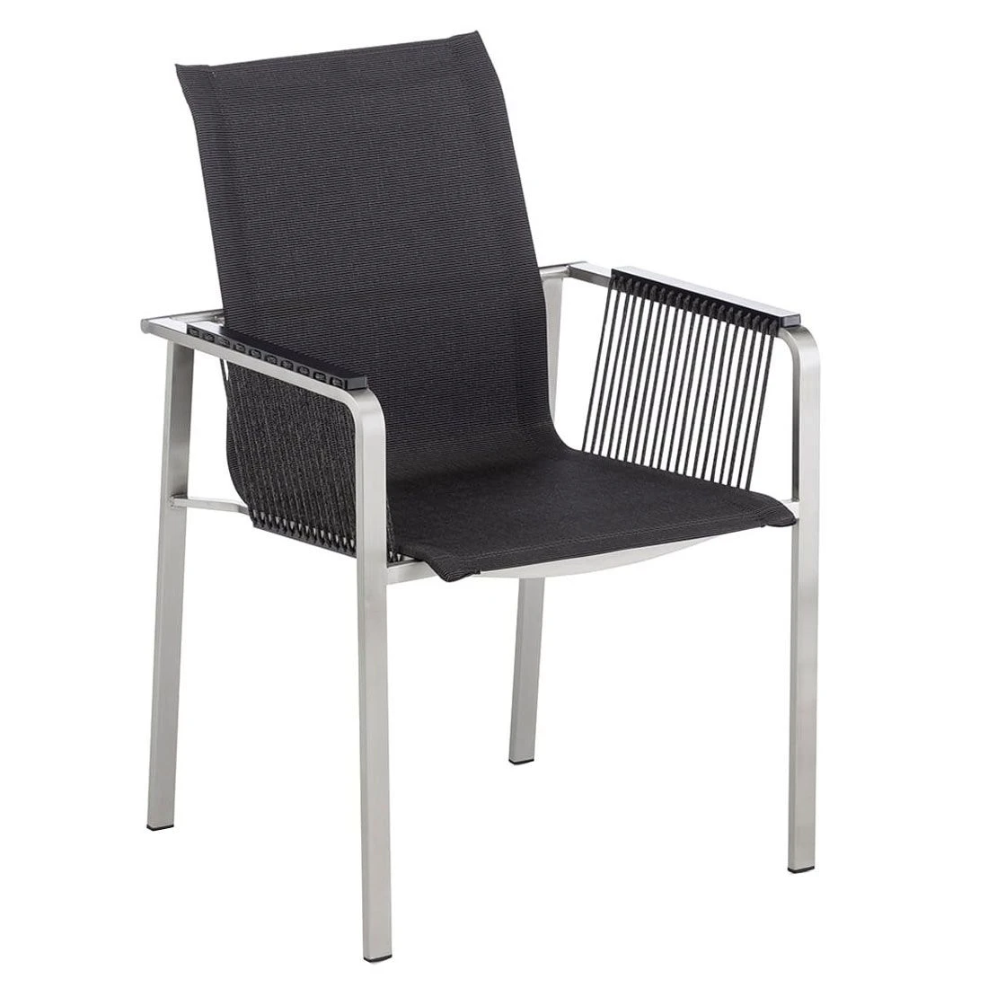 Damit der Stapelsessel optisch ansprechend ist, sind die Sitzfläche und der Bezug im Farbton Charcoal gehalten. Das Gestell des Stapelsessels besteht aus hochwertigem und rostfreiem Edelstahl. Neben seiner ansprechenden Optik bietet dieses Material auch eine hohe Stabilität. Farblich ist dieses in Silber gehalten. Für die Bespannung der Sitzfläche verlässt sich der Hersteller auf hochwertiges Textilene. Es zeichnet sich durch eine hohe Robustheit gegenüber Hitze und Frost aus und ist leicht zu reinigen.