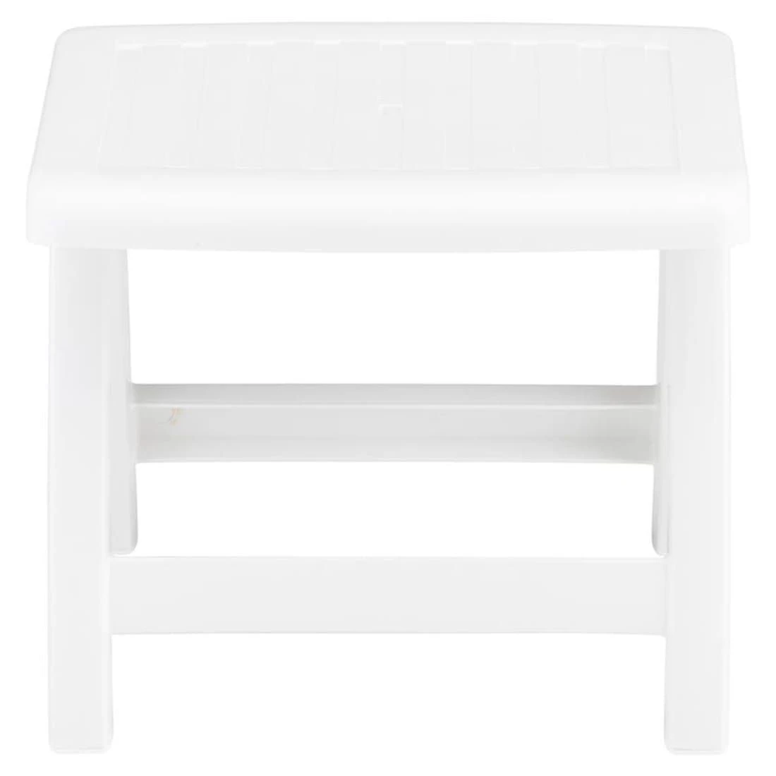 Der Gartenhocker besteht vollständig aus Kunststoff. Dies erzeugt nicht nur ein geschmackvolles, sondern auch einheitliches Bild des attraktiven Möbels. Für ein perfekt stimmiges Gesamtbild sorgt die einheitliche Farbgebung in stilvollem Weiß.