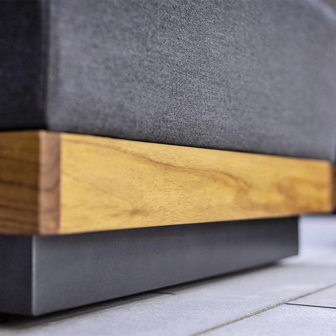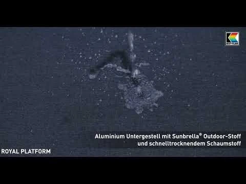 Das Gestell wird aus Aluminium gefertigt. Das geringe Eigengewicht des Materials macht den Loungehocker zu einem robusten, aber dennoch leicht zu transportierenden Sitzmöbel auf Ihrer Terrasse. Farblich ist dieses in Anthrazit gehalten. Für die Bespannung der Sitzfläche wurde ein besonders hochwertiger Sunbrella-Stoff gewählt. Er zeichnet sich durch besonders hohe Robustheit gegenüber Hitze und Frost aus und ist leicht zu reinigen. Die Farbgestaltung der Sitzfläche in Sooty ist überaus ansprechend.