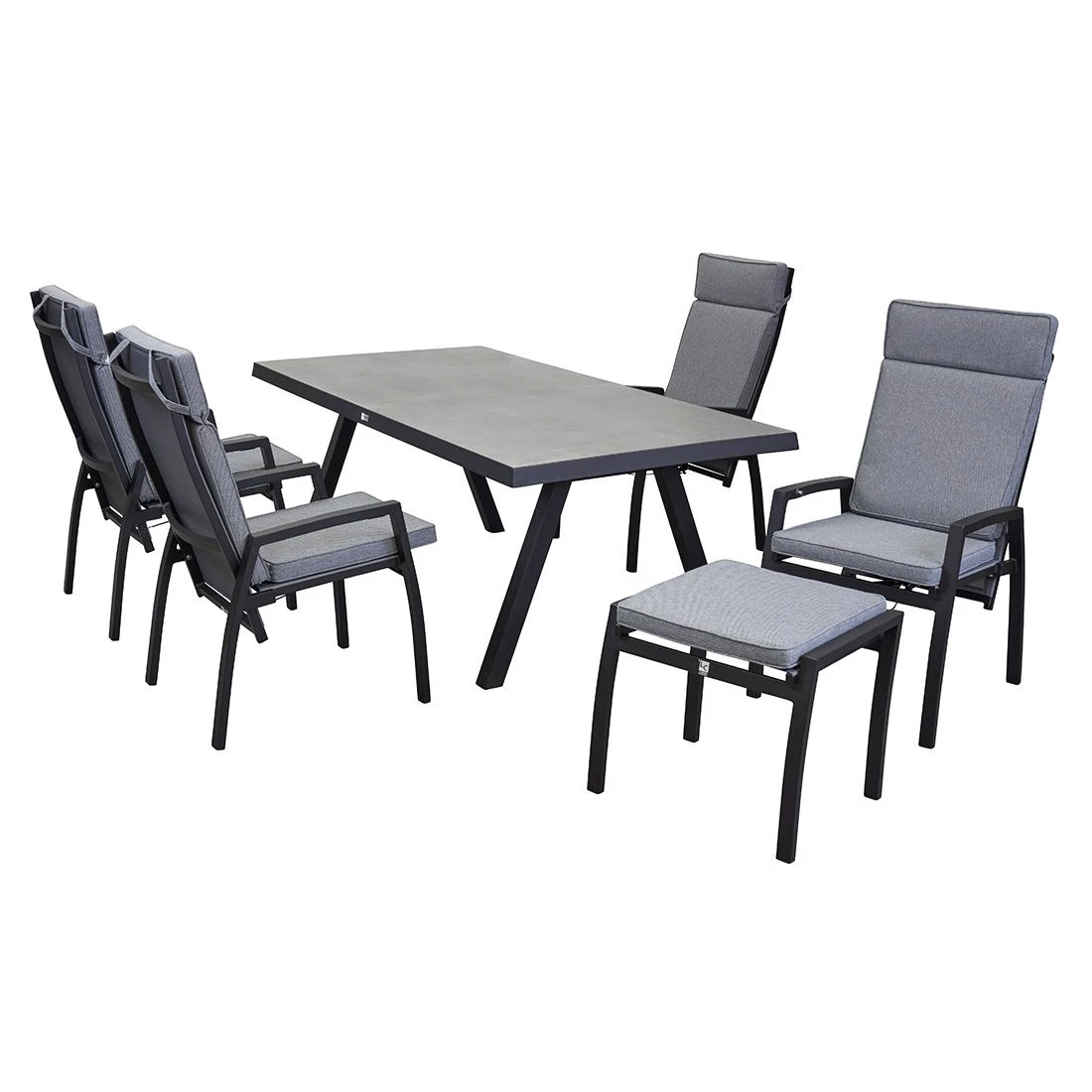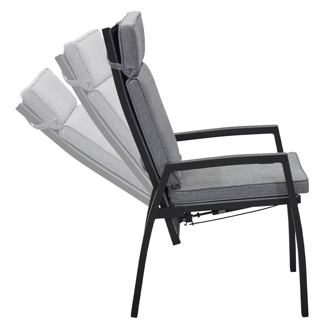 Für die Herstellung des Gestells wird hochwertiges und wetterfestes Aluminium verwendet. Farblich ist dieses in Schwarz gehalten. Das Gestell besticht mit seinen attraktiven Kufen.