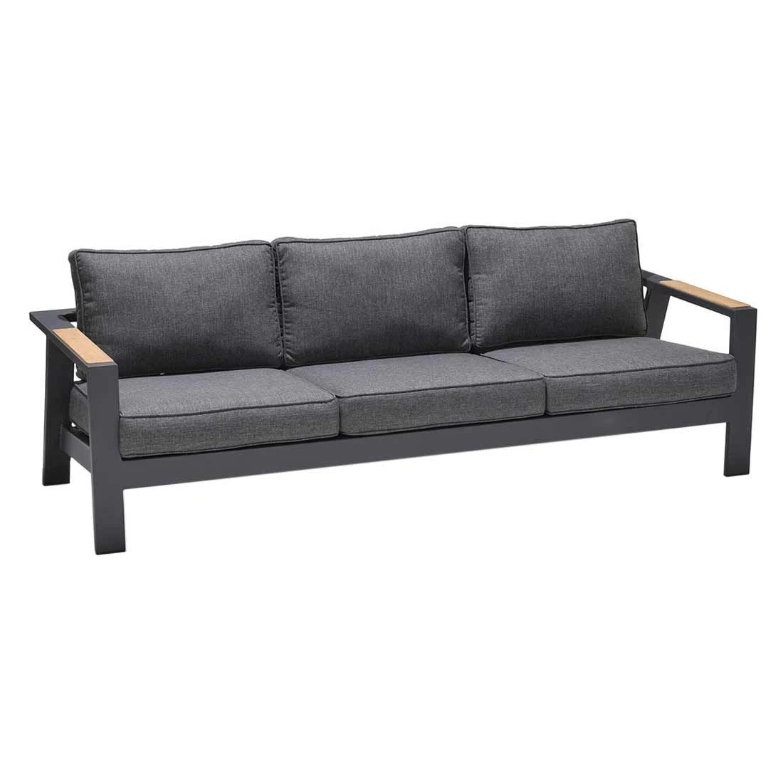 Die Sitz- und Rückenfläche ist aus dem Marken-Outdoorstoff Olefin gefertigt. Das Material verbindet eine angenehme Stoffoberfläche mit hoher Witterungsbeständigkeit. Denn sowohl Sonne als auch Regen können dem robusten Outdoor-Stoff kaum etwas anhaben. Für ein perfekt stimmiges Gesamtbild sorgt die einheitliche Farbgebung in stilvollem Dunkelgrau.