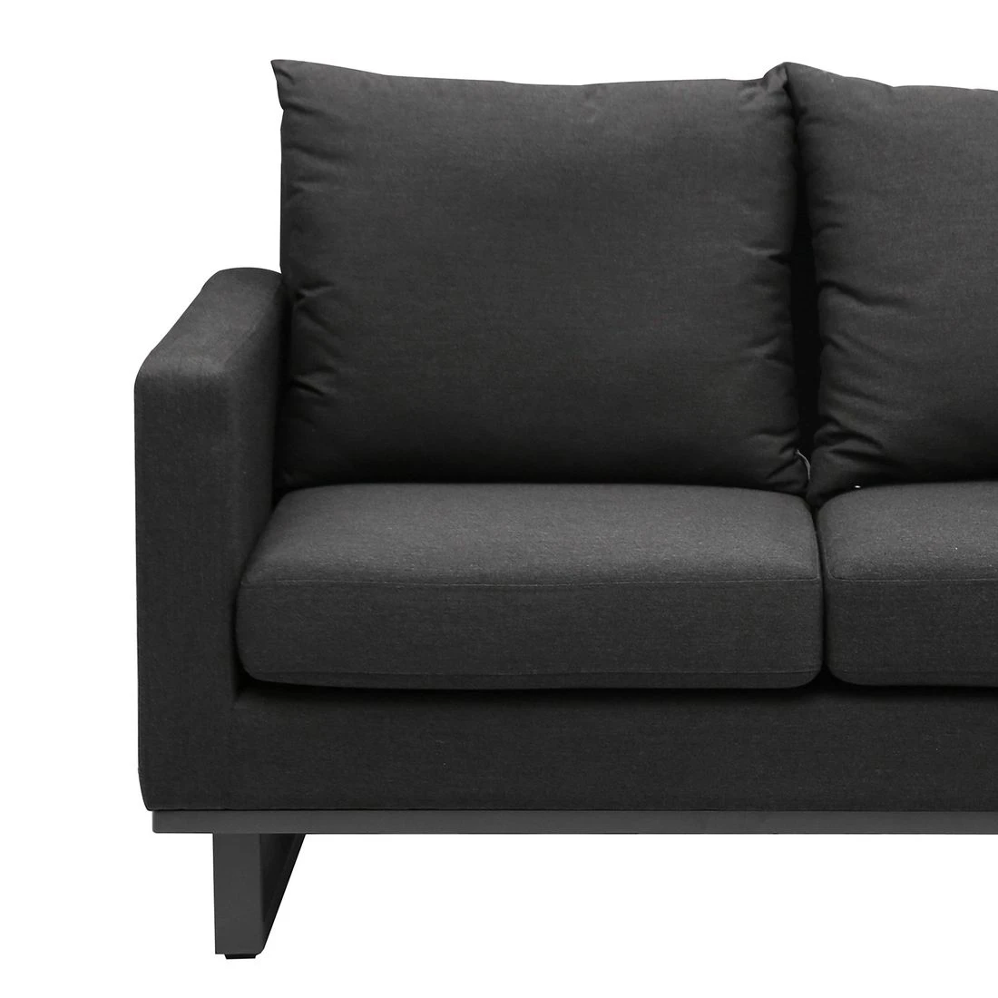 Für die Herstellung des Gestells wird hochwertiges und wetterfestes Aluminium verwendet. Farblich ist es in attraktivem Anthrazit gehalten. Ein hochwertiges Material wird auch für die Sitzfläche verwendet: In diesem Fall kam der wasserabweisende und UV-beständige Markenstoff Sunbrella® zum Einsatz. Auch schmutzabweisend und schimmelresistent – ideale Voraussetzungen für eine gepolsterte Lounge im Freien!