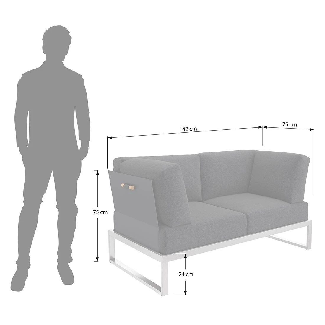 Die Sitzbreite von 137 cm und die Sitztiefe von 72 cm machen das Endmodul besonders komfortabel. Die Sitzhöhe liegt zudem bei angenehmen ohne Kissen: 24 cm. Dieses Endmodul bietet 2 Personen Platz. Damit verfügt dieses Modell über genügend Sitzplätze für die ganze Familie.