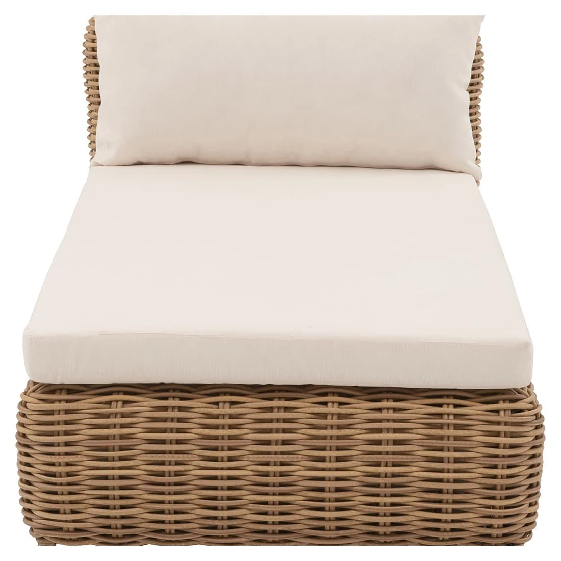 Damit die Gartenliege optisch ansprechend ist, sind die Tischplatte und die Sitzfläche im Farbton Natur gehalten. Das Gestell besteht aus Aluminium. Die Sitzfläche, die mit hochwertigem Polyrattan umflochten ist, bringt ein natürliches Flair auf Ihre Terrasse. Dieses Material zeichnet sich durch eine hohe Wetterbeständigkeit aus. Der Bezug der Gartenliege ist aus Polyester gefertigt. Auch wenn der Bezugsstoff Wind und Wetter trotzen kann, empfehlen wir, abnehmbare Kissen bei länger andauernder Feuchtigkeit und im Winter drinnen zu lagern. Die Farbe des Bezugs ist Mixed Beige.