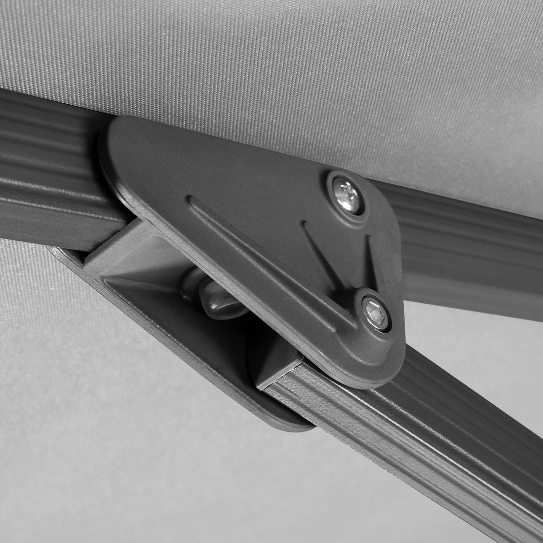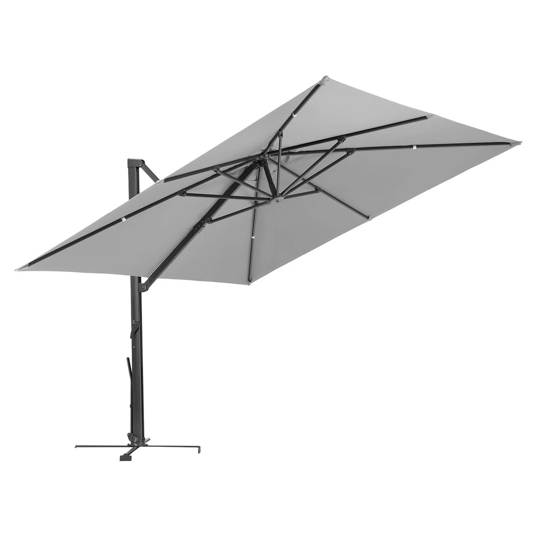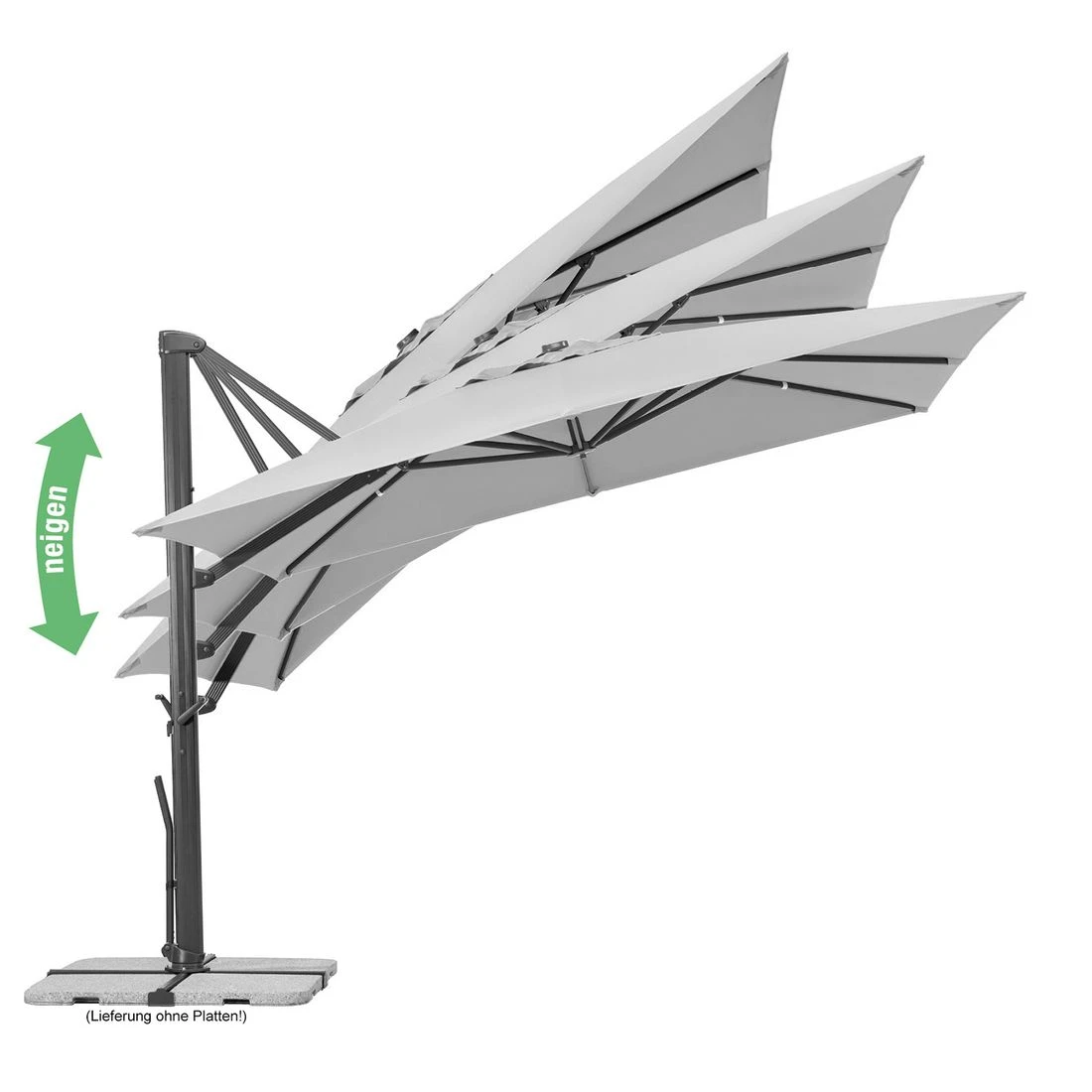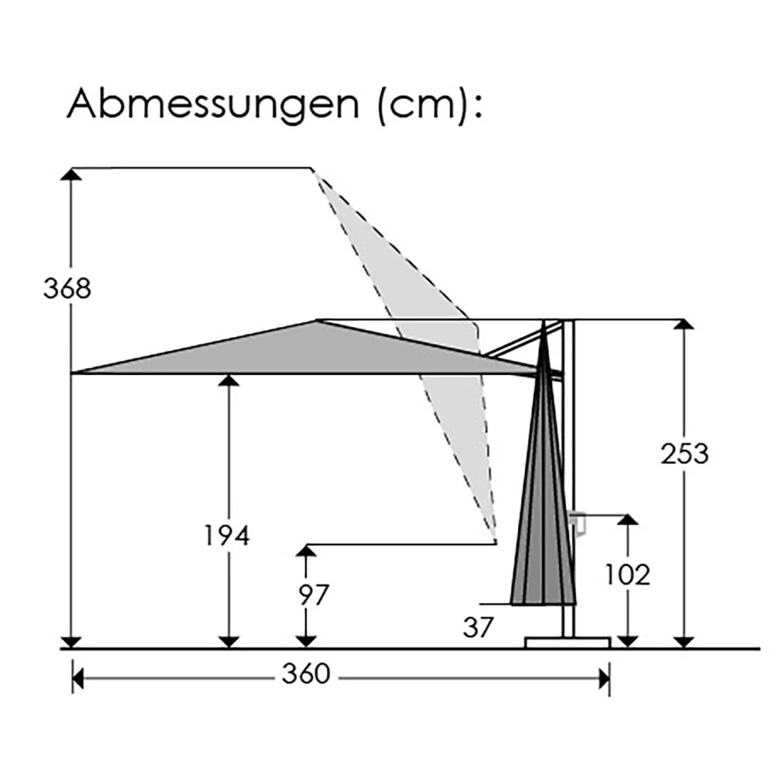 Bei diesem Sonnenschirm-Modell ist das Schirmdach in Richtung Schirmmast aufstellbar und bequem per integriertem Handhebel drehbar. Im Schirmdach ist eine Windauslassöffnung eingearbeitet.