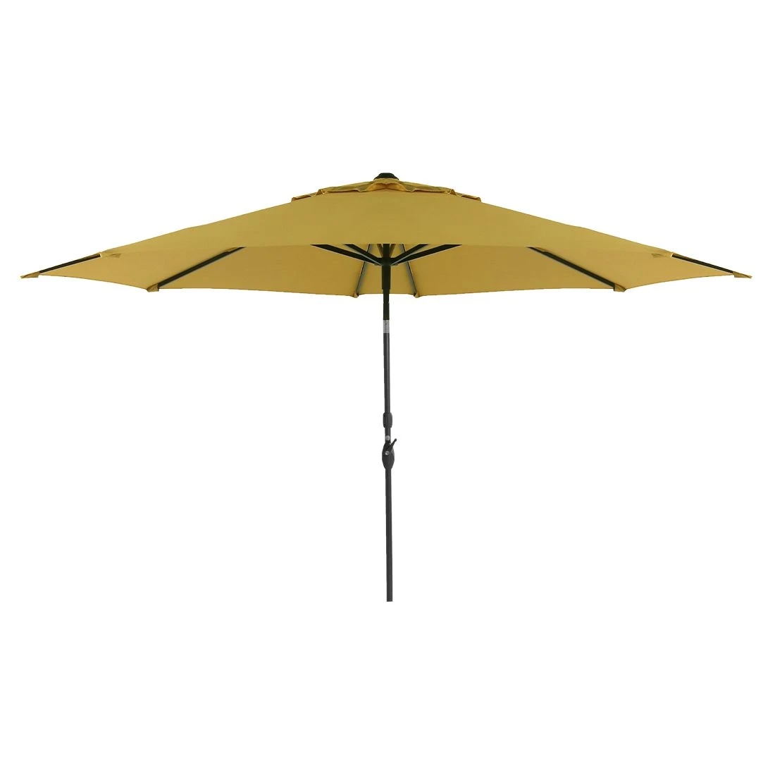 Das moderne Schirmmodell besteht aus einem Aluminiumgestell in Schwarz mit 6 Aluminiumschienen und einem senffarbenen Bezug aus 100% Polyester. Der Sonnenschirm ist mit einer praktischen Kippfunktion ausgestattet und zusätzlich als Pluspunkt ist eine Schutzhülle inklusive.