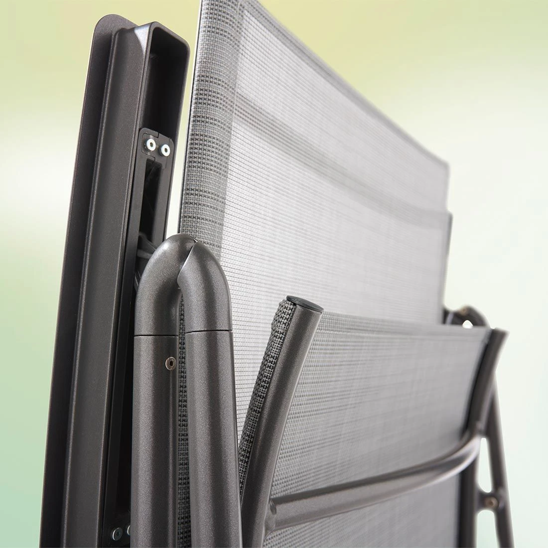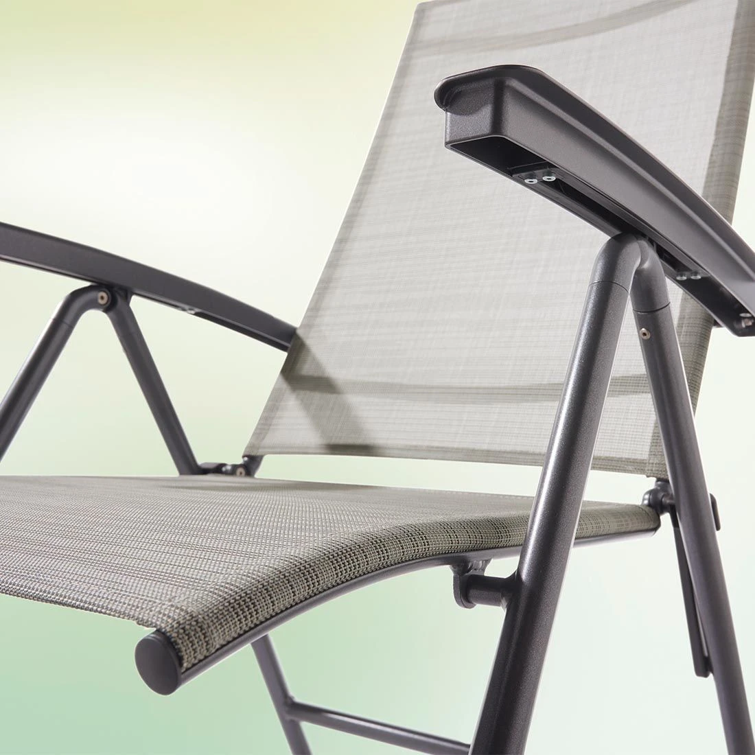Durch die praktische Klappfunktion ist der Klappsessel platzsparend zu verstauen. Damit Sie sich bequem zurücklehnen können, stellen Sie Ihre Wunschposition ganz einfach mittels Rasterschiene an der Rückenlehne ein.