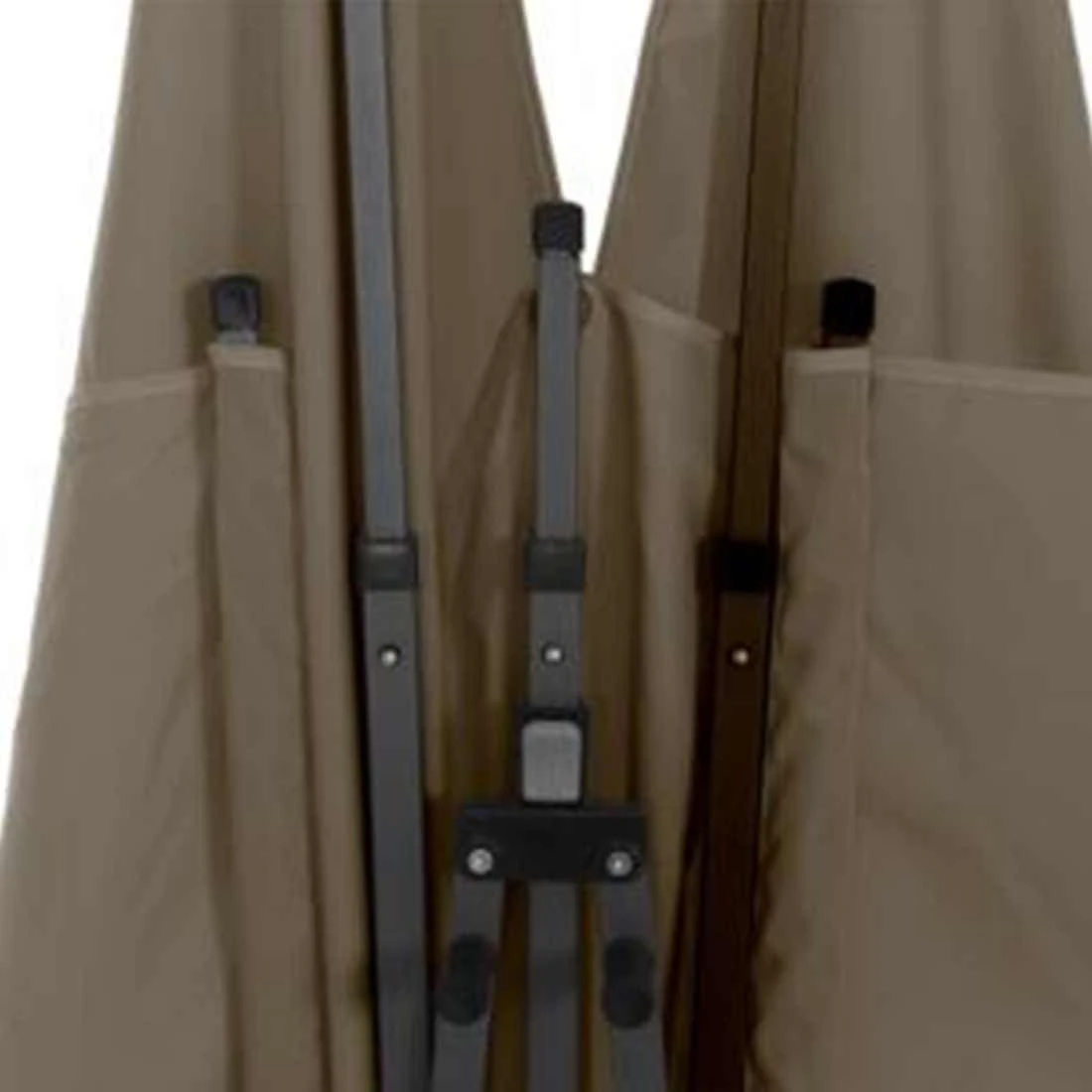 Wie bereits erwähnt, besteht das Gestell aus pulverbeschichtetem Stahl. Der Bezug ist aus Polyester gefertigt und mit dem Lichtschutzfaktor UPF 50+ versehen. So können Sie den Sichtschutz auch hervorragend am Strand als Schattenspender nutzen.