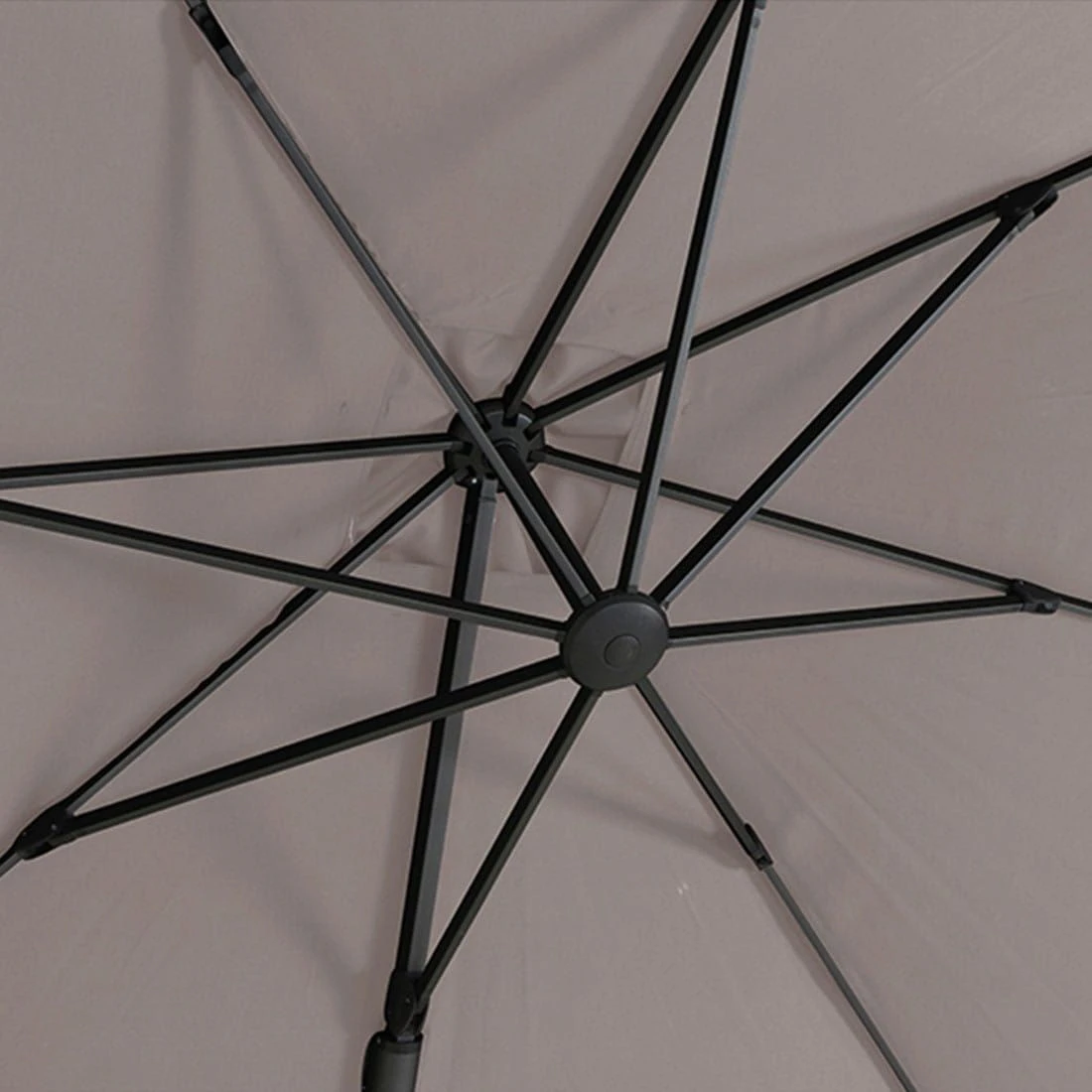 Die Durchgangshöhe dieses Sonnenschirms beträgt abhängig der Schirmgröße ca. 195-200 cm. Aufspannen lässt sich der Sonnenschirm ganz einfach durch die Betätigung der Kurbel. Bei diesem Sonnenschirm-Modell ist das Schirmdach sowohl aufstellbar als auch nach rechts oder links neigbar. Ganz bequem per Fußpedal lässt sich der Ampelschirm so drehen, wie man ihn gerade braucht.