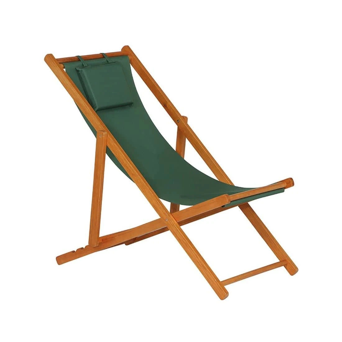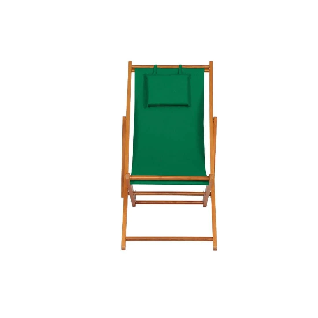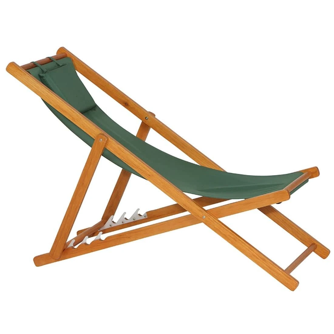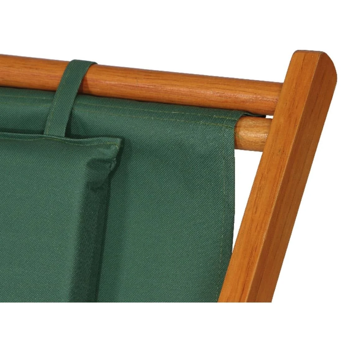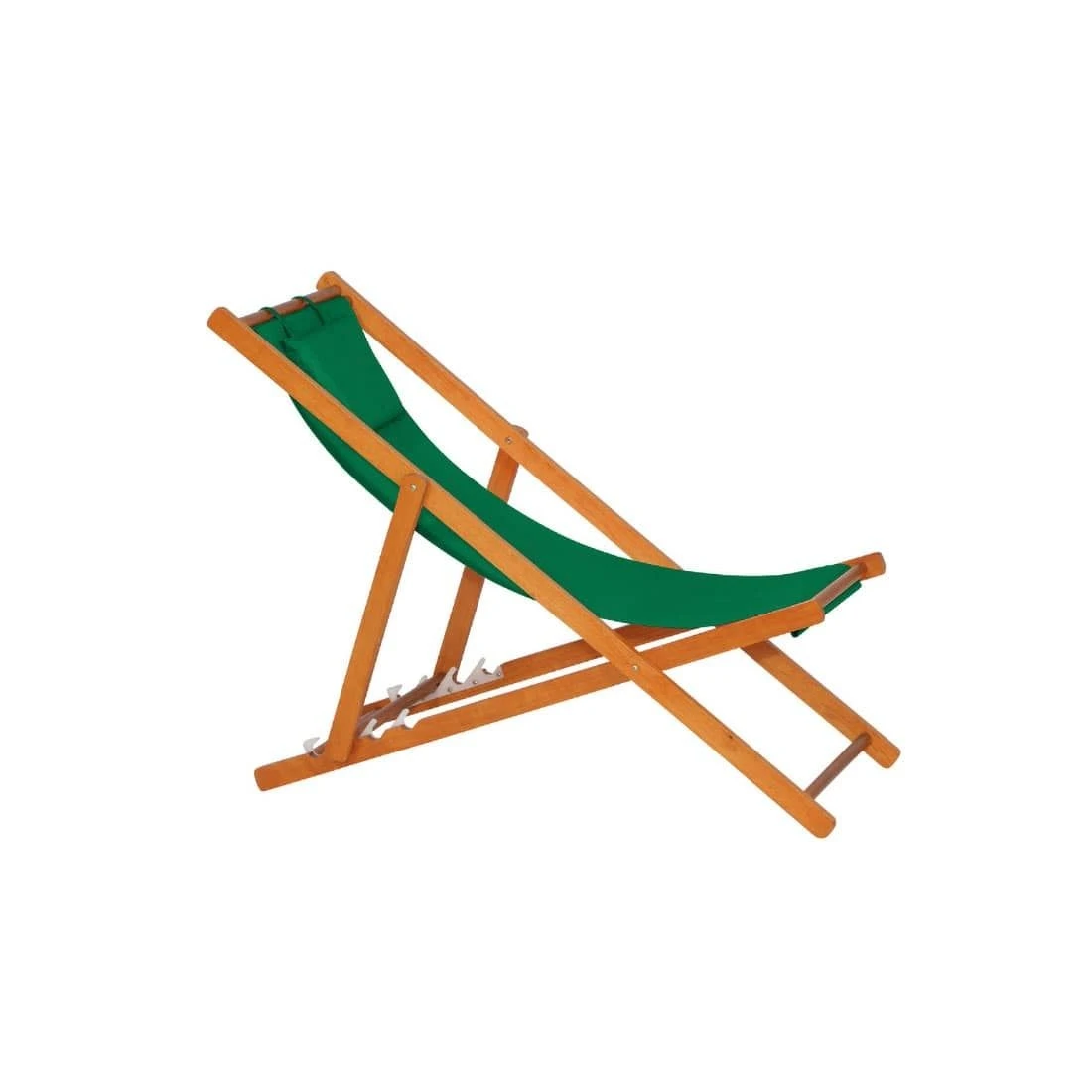 Das Gestell besteht aus langlebigem Holz. Für eine attraktive Optik ist das Gestell im Farbton Braun gehalten. Die Sitzfläche des Liegestuhls wird mit Polyester bespannt. Die Sitzfläche ist in ansprechendem Grün gehalten.