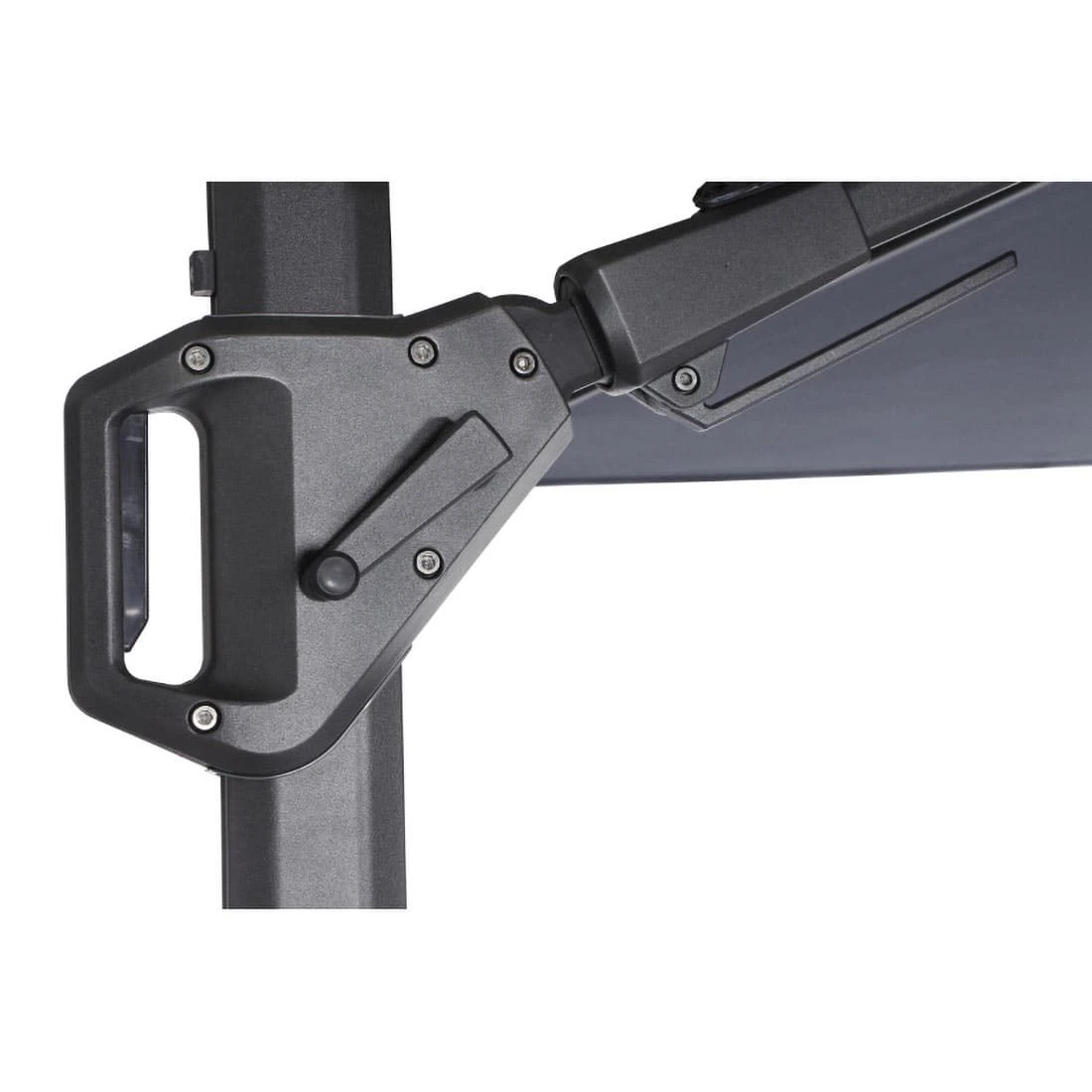 Die Durchgangshöhe dieses Sonnenschirms beträgt abhängig der Schirmgröße ca. 195-200 cm. Aufspannen lässt sich der Sonnenschirm ganz einfach durch die Betätigung der Kurbel. Bei diesem Sonnenschirm-Modell ist das Schirmdach sowohl aufstellbar als auch nach rechts oder links neigbar. Ganz bequem per Fußpedal lässt sich der Ampelschirm so drehen, wie man ihn gerade braucht.