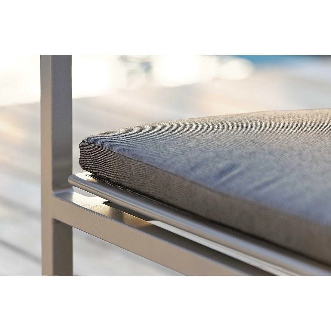 Als Material des Gestells hat der Hersteller qualitativ hochwertiges Aluminium gewählt. Optisch begeistert das Gestell in der Farbe Graphit. Die Sitzfläche ist mit Textilene bespannt. Dieses Material ist reiß- und wetterfest.