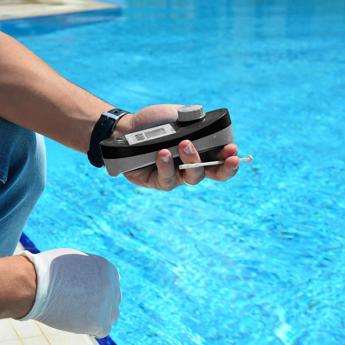 - pH: pH-Indikator (Phenol Red Photometer) – gibt den pH-Wert Ihres Schwimmbadwassers wieder