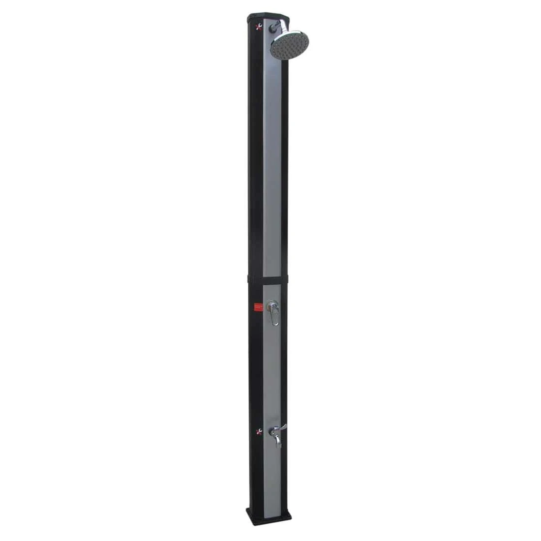 Durch die integrierte Mischbatterie kann kaltes Wasser aus dem Gartenschlauch mit dem aufgeheizten Wasser im Tank gemischt werden und Sie können die Wassertemperatur individuell für sich anpassen. Die Solardusche ist zusätzlich noch mit einer Fußdusche und Sprühnebelfunktion ausgestattet.