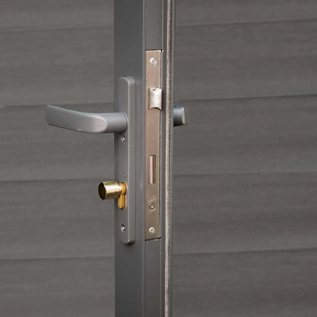 - 1 Aluminium-Doppeltür mit Struktur-Sicherheitsglas und Zylinderschloss