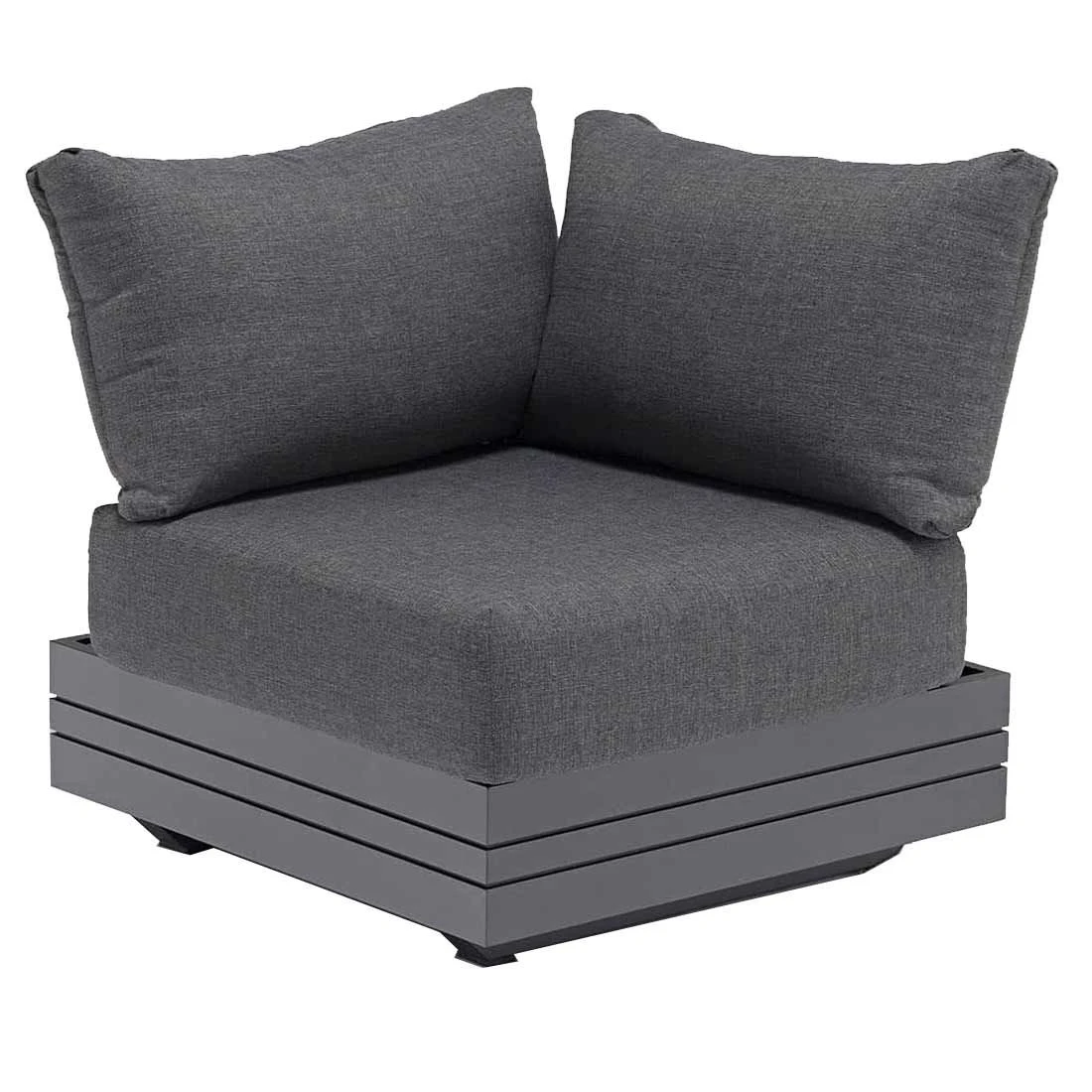 Die Sitzfläche und der Bezug bestehen aus Olefin. Damit die Ecklounge optisch ansprechend ist, sind das Gestell und die Sitzfläche im Farbton Graphit gehalten. Als Gestellmaterial hat der Hersteller wertiges Aluminium gewählt. Die Farbe des Bezugs ist Dunkelgrau. Als Material für die Tischplatte wird das besonders hochwertige Hartholz Teak verwendet. Die Maserung dieses Holzes und der angenehme Farbton integrieren sich äußerst gut in jegliche Arten der Garten- und Balkongestaltung und verströmen eine einzigartig natürliche Atmosphäre. Farblich überzeugt die Tischplatte in Teak.