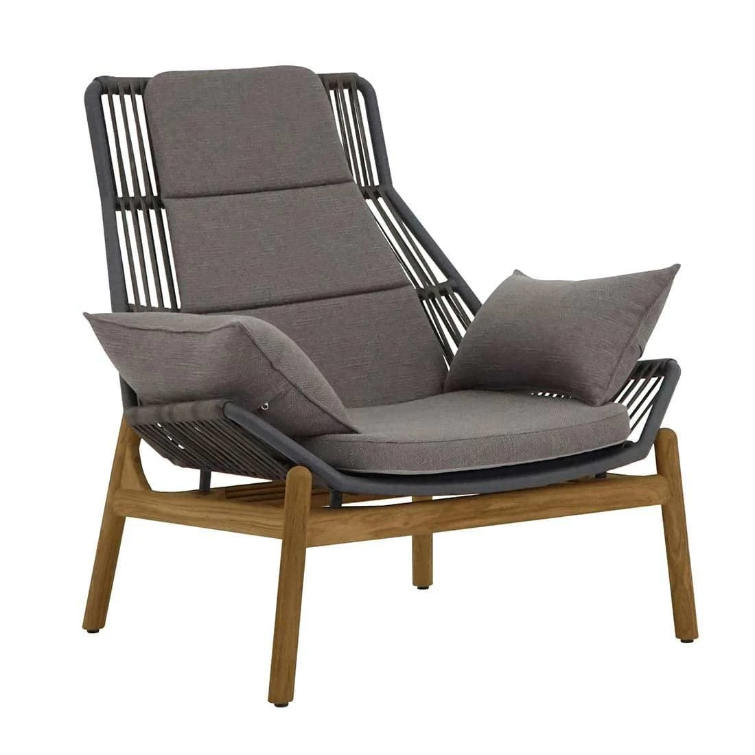 Die hohe Dichte und gute Wetterfestigkeit machen das Gestell, das aus Teakholz gefertigt wird, besonders robust und wetterfest. Optisch begeistert das Gestell in der Farbe Teak Gebürstet. Das Gestell ist mit Rope umflochten und bringt somit ein gemütliches Flair auf Ihre Terrasse. Der Korpus ist farblich in geschmackvollem Brown Brushed gestaltet. Die Sitzfläche ist aus robustem Outdoorstoff gefertigt. Bei langen Feuchtigkeitsperioden empfehlen wir für eine längere Haltbarkeit dennoch eine Lagerung der abnehmbaren Kissen im Inneren.